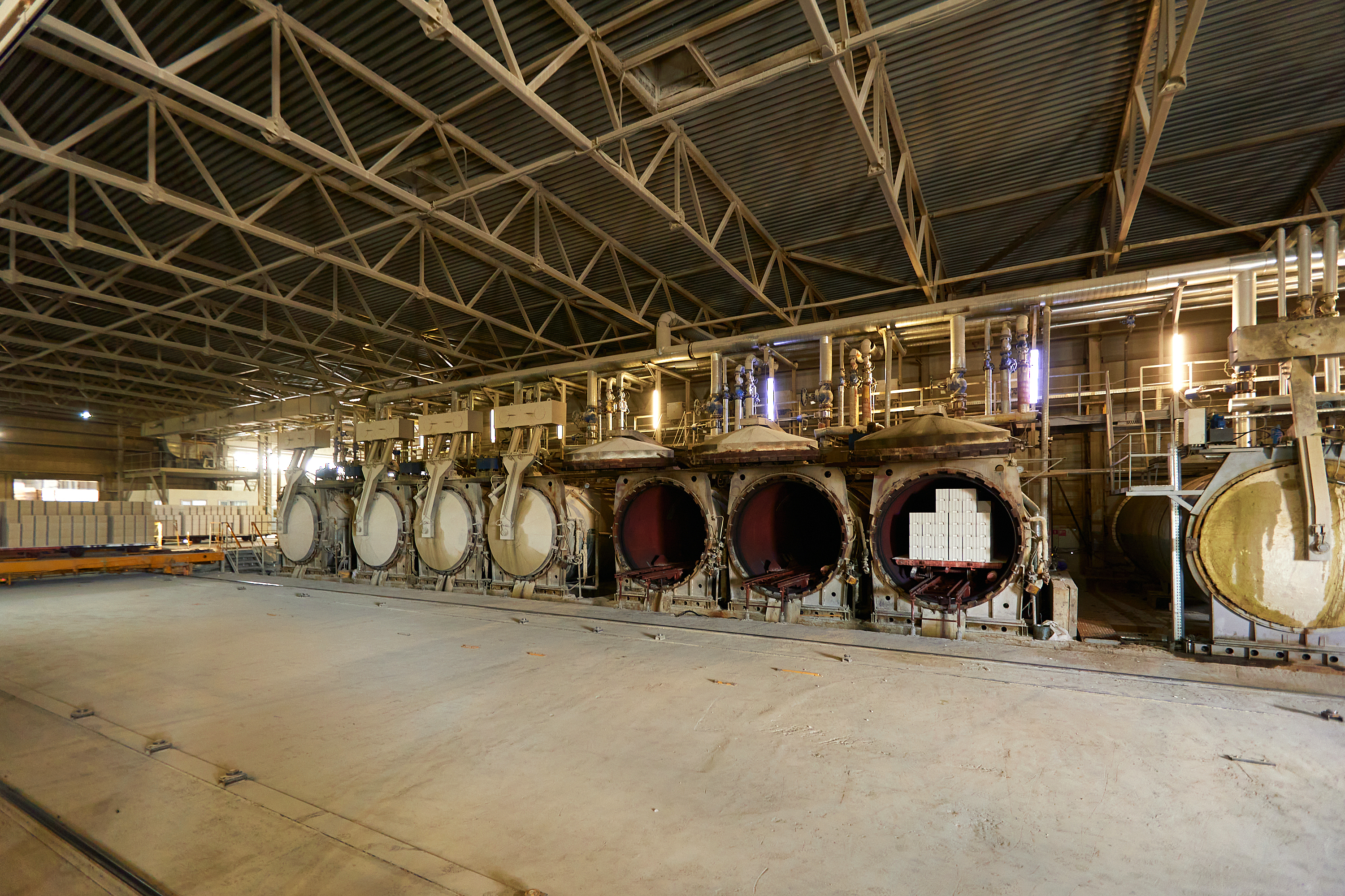 В качестве компонентов для изготовления используются цемент, известь, гипс и песок. Пористая структура формируется с помощью пенообразователя. Прочность придается изделию путем обработки в автоклавах, где поддерживается давление, влажность и температура.